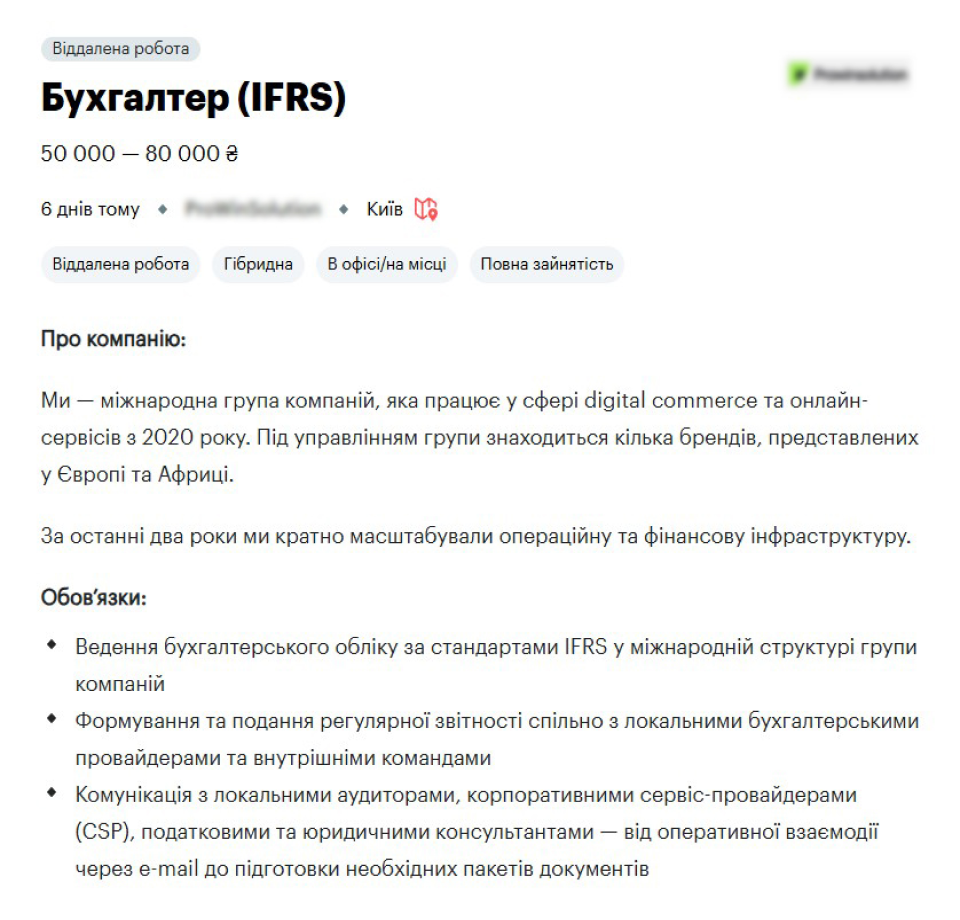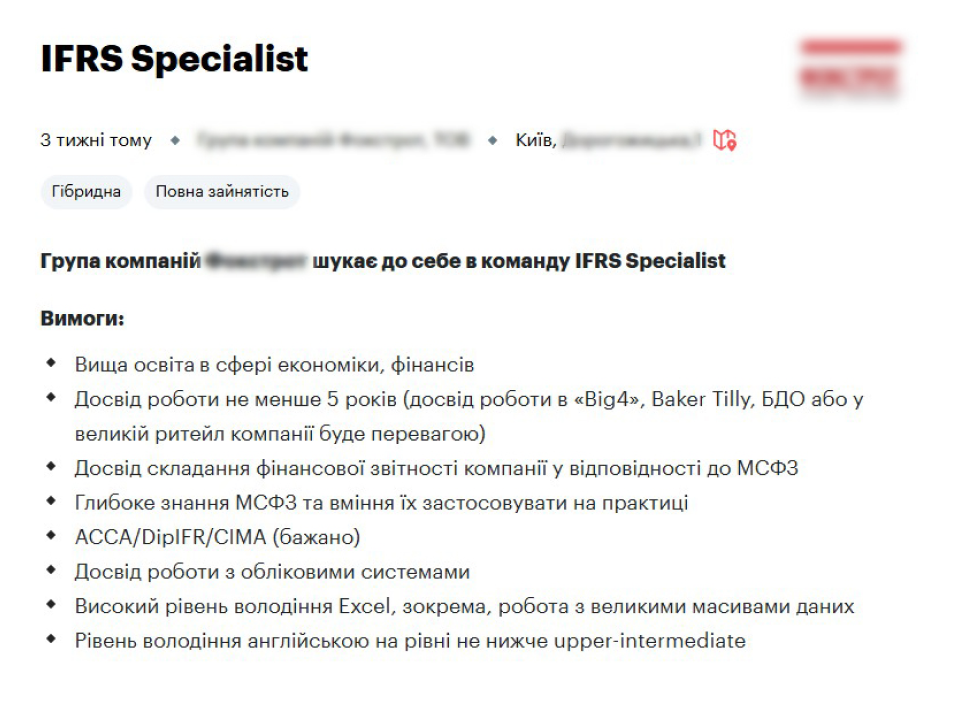 - IFRS Accountant/Бухгалтер з МСФЗ