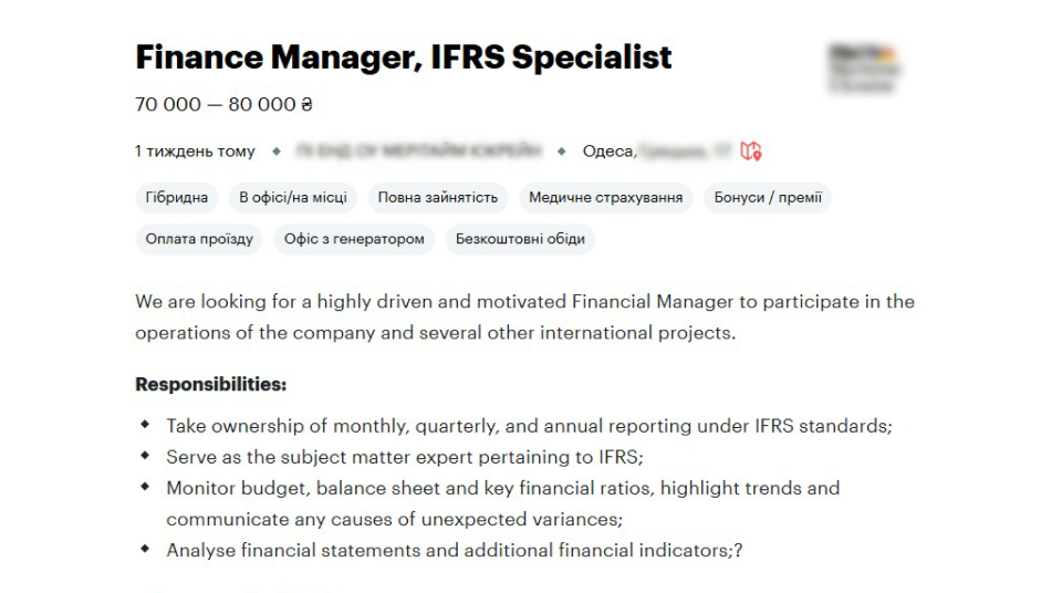 - IFRS Reporting Manager/Менеджер із підготовки звітності за МСФЗ
