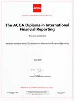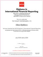 Це диплом з міжнародних стандартів фінансової звітності (МСФЗ), який видає глобальна міжнародна професійна організація для бухгалтерів, фінансистів та аудиторів ACCA. Документ визнаний та добре відомий у професійному середовищі по всьому світу — від корпорацій до компаній Big 4.