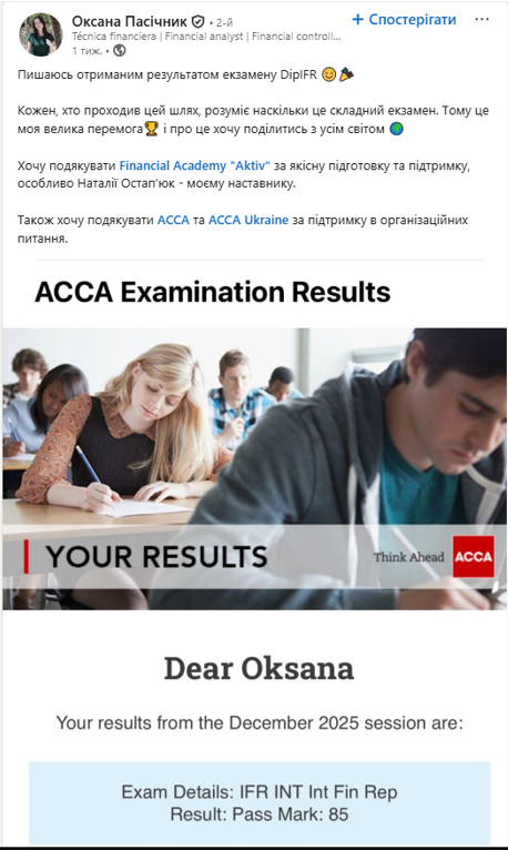 Своими эмоциями и впечатлениями выпускники делились как в групповом чате, так и в других соцсетях. Некоторые иллюстрировали свои сообщения уведомлениями о результатах экзамена от ACCA.